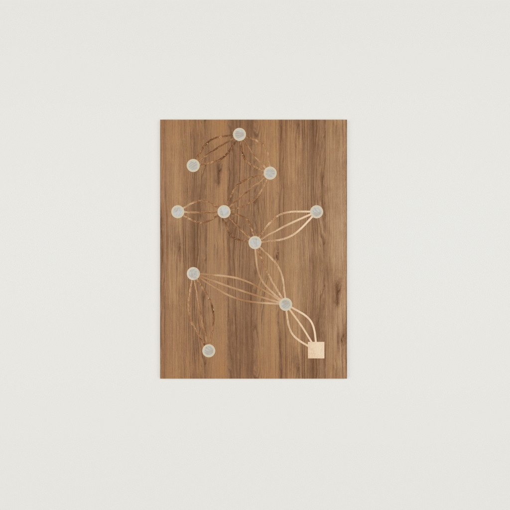 Ce projet explore la création de motifs algorithmiques à partir d’un moyen technique, l’écriture de code assistée par intelligence artificielle. Il s’agit de générer des motifs à marqueter inspirés des circuits électroniques, caractérisés par une source d’alimentation, des lignes directrices et des points de connexion situés à leurs extrémités.