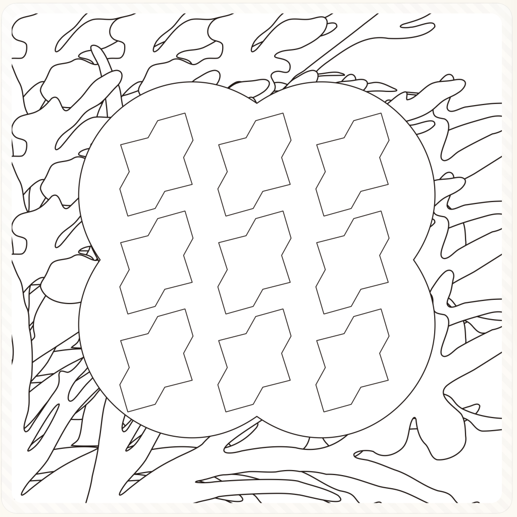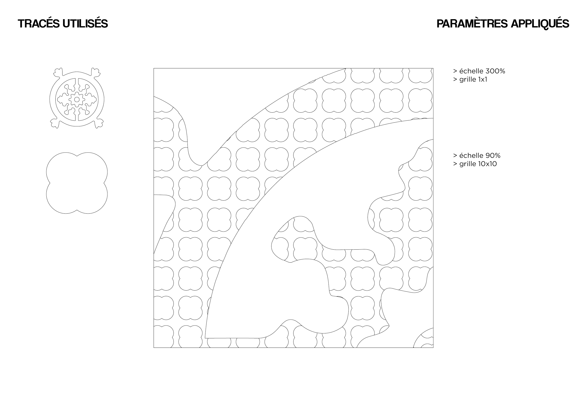 - Ce dessin est décorrélé de sa construction géométrique (suppression des symétries)